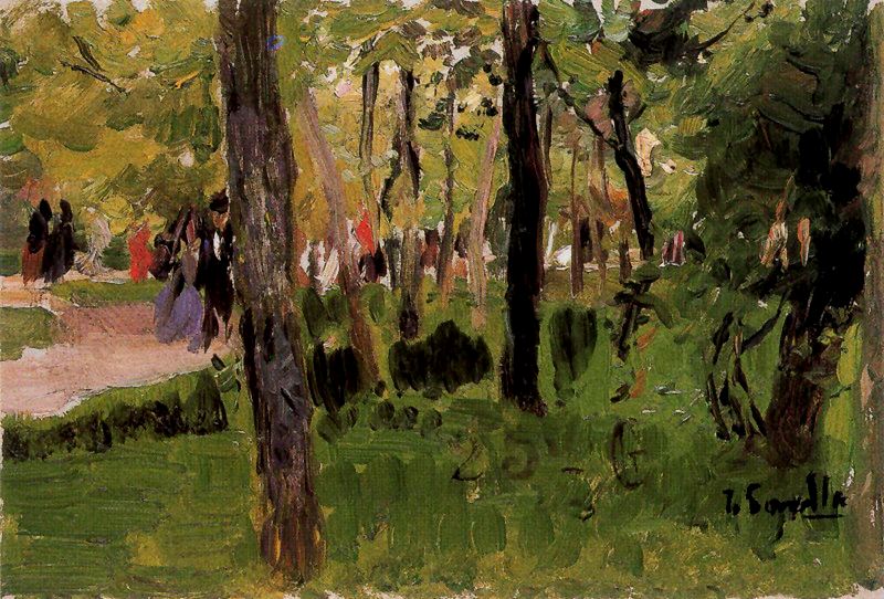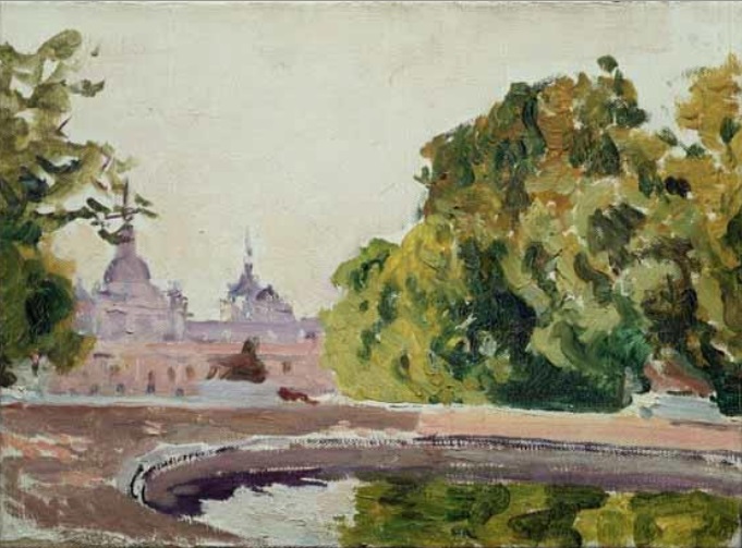 Para mí ha sido toda una sorpresa descubrir algunos rincones de la Comunidad de Madrid a través de los pinceles del pintor valenciano: paisajes en El Pardo, incluídas las montañas del Guadarrama, o el famoso embarcadero en el Parque del Retiro, en plena urbe. No son de extrañar estas obras, teniendo en cuenta que el pintor fijó definitivamente su residencia en la capital en el año 1890, y en estas mismas tierras murió, en el año 1923, concretamente en el municipio de Cercedilla, donde la familia contaba con una propiedad de recreo.
