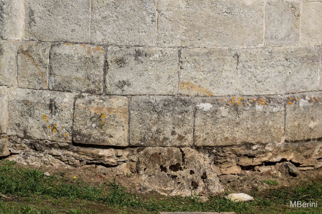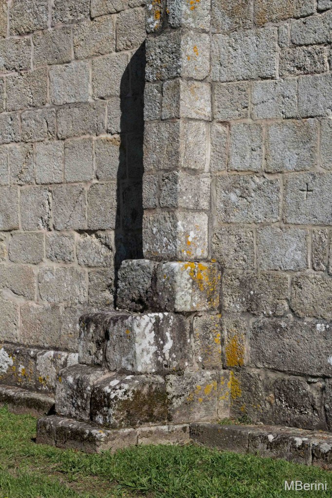 En los dos muros laterales, se pueden observar tres contrafuertes, dividiendo la nave en tramos, así como pequeñas saeteras, fundamentales para la iluminación del templo. En el centro de ambos lados encontramos puertas, si bien una de ellas está cegada y la otra, claramente modificada a tenor del dintel horizontal sobre el que descansa un tímpano muy mutilado. Rematan los muros laterales diversos canecillos, aunque no se conservan todos los primitivos, a causa, por ejemplo, de la mencionada espadaña que se construyó a posteriori.