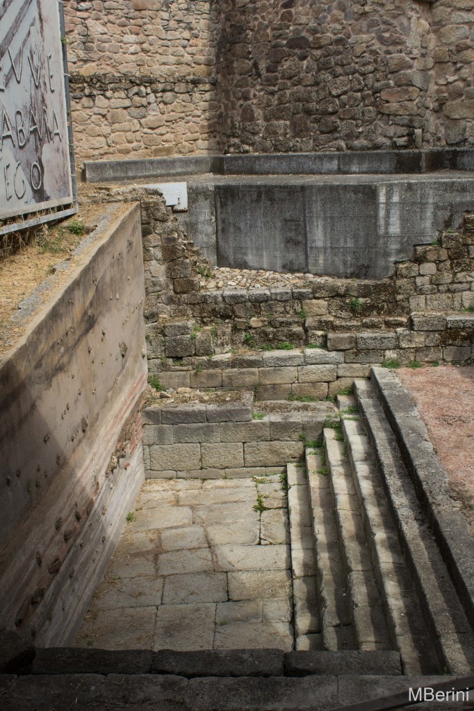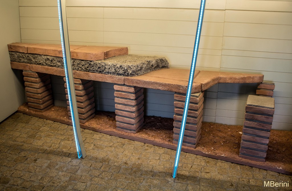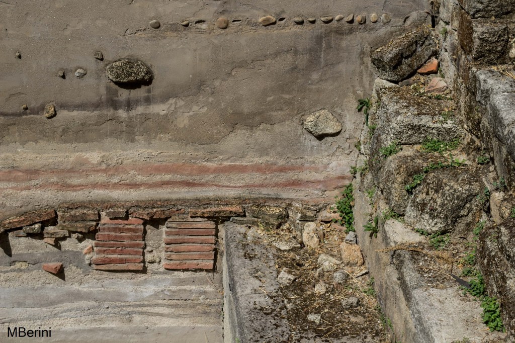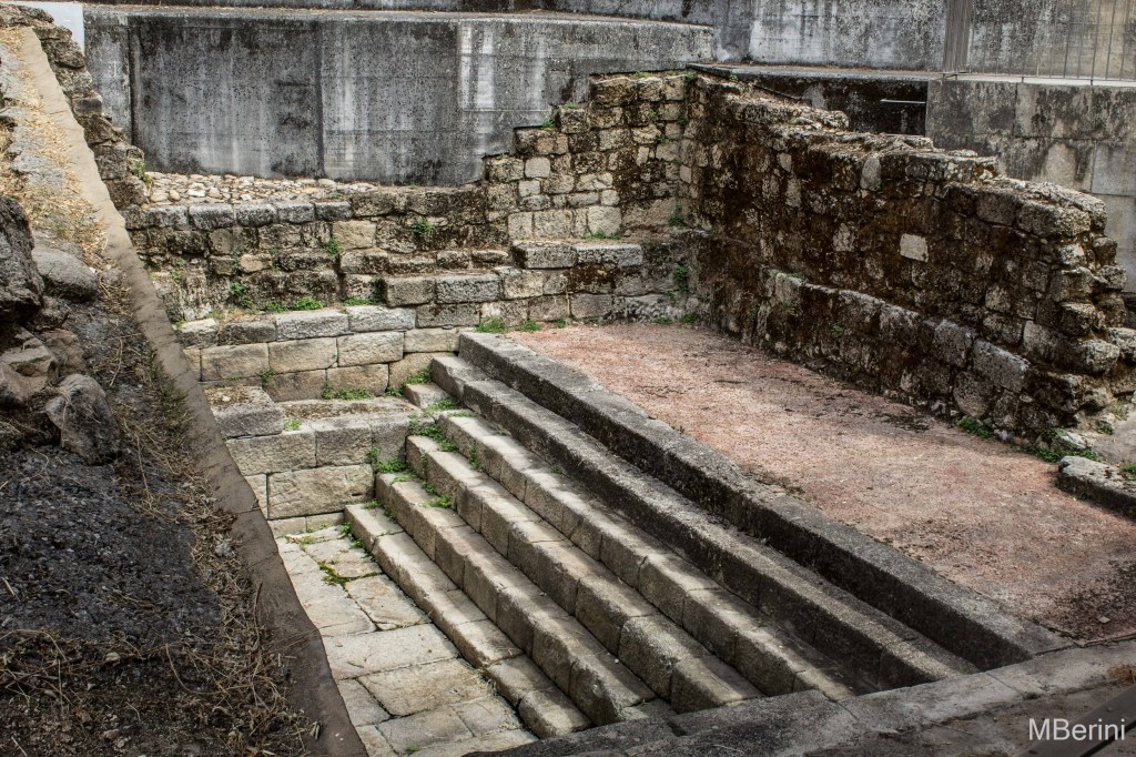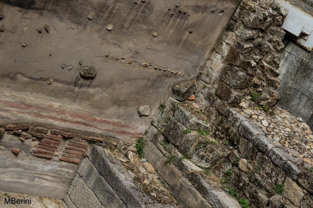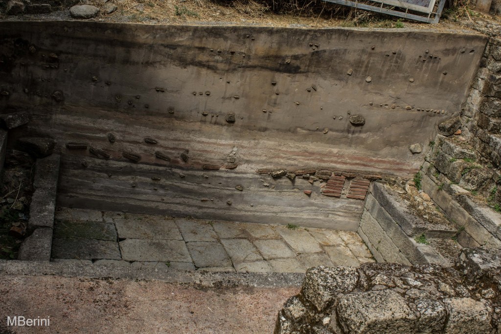 La zona A está formada por una piscina termal romana que pertenecía a una casa de baños de tipo religioso. Resulta muy interesante por sus niveles estratigráficos. Para el que no lo sepa, la arqueología marca diferentes niveles para diferenciar las etapas en la construcción y datar su antigüedad. El proceso consiste, básicamente, en ir fechando cada capa superpuesta de la tierra. Conforme vas bajando, los vestigios son, por lógica, más antiguos. En unas de las paredes de este yacimiento, están señalados los niveles estatigráficos para que el visitante los diferencie con claridad.