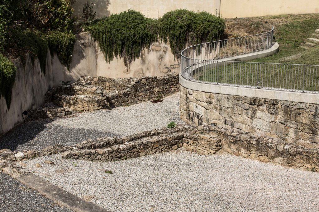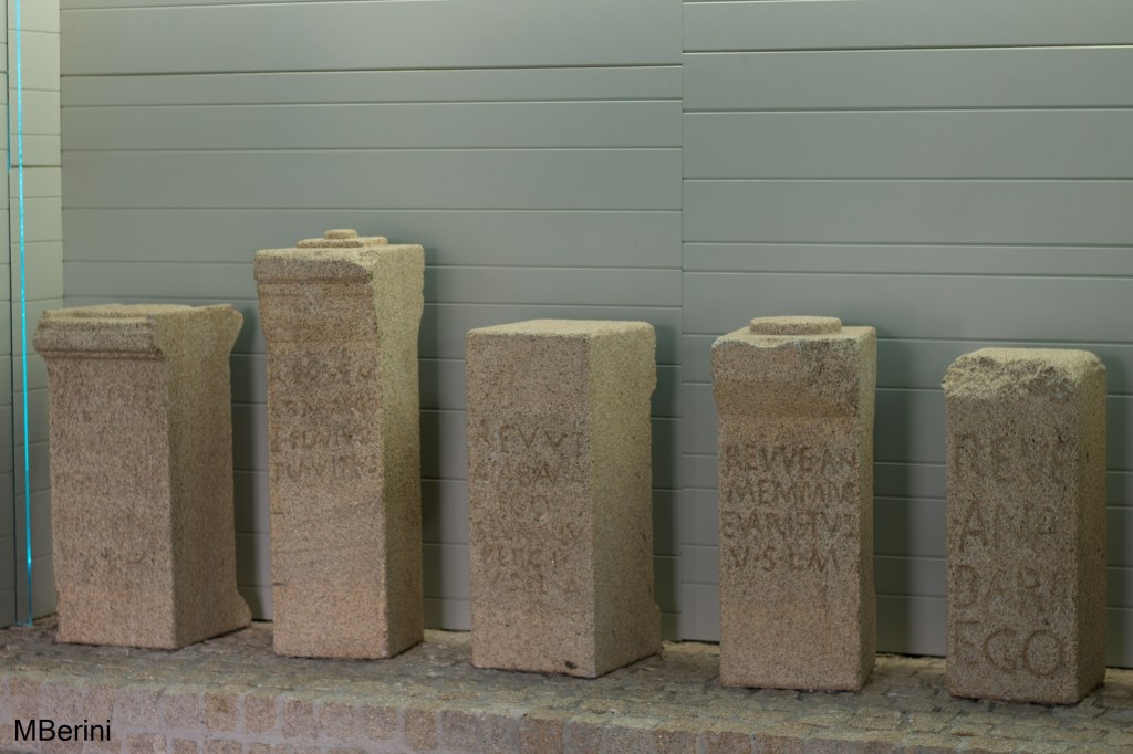 Del mismo modo, gracias a dos paneles explicativos, se pueden identificar las partes de la piscina y saber a qué época pertenecen. Se conserva el muro de la primitiva (siglo I d.C.), su reforma posterior incorporando el hipocausto, y también las modificaciones de la Edad Media. Por tanto, se puede apreciar su evolución y de ahí lo importante de este yacimiento. En él fueron encontradas las aras votivas a Revve y el camafeo del que hablaba anteriormente.