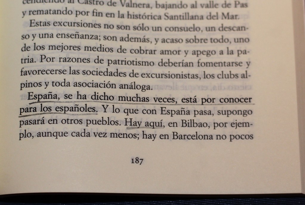 «España, se ha dicho muchas veces, está por conocer para los españoles. (…) Hay aquí (…) no pocos que sin conocer el resto de España, sin haber viajado por ella, sin haber visitado rincones llenos de historia, de leyenda, de poesía y de paz de Castilla, Aragón, Extremadura o Andalucía, se han ido a viajar por Francia, Italia o Alemania.