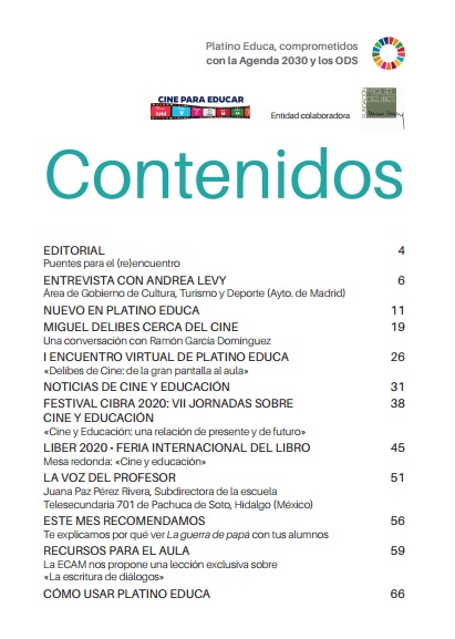 Platino Educa es una iniciativa de EGEDA (Entidad de Gestión de los Productores Audiovisuales) en colaboración con FIPCA (Federación Iberoamericana de Productores Cinematográficos y Audiovisuales), cuyo objetivo principal es educar y difundir la cultura a través del cine, tal y como se definen ellos mismos en su página web (click). Ofrecen a los centros educativos la posibilidad de suscribirse a su plataforma y acceder así a una amplia selección de materiales audiovisuales para uso educativo. El valor de Platino Educa reside, desde mi punto de vista, en contar con un variadísimo catálogo de películas hispanas, para uso tanto del profesorado como de los propios alumnos, y, a su vez, ofrecer guías didácticas ya elaboradas con la secuenciación de los objetivos y las actividades para alcanzarlos, entre otros aspectos pedagógicos. Gracias a Platino Educa los docentes podemos introducir el cine en las aulas, garantizando calidad, innovación y, en definitiva, una buena praxis educativa. En el telediario de TVE se hicieron eco de su nacimiento hace unos meses. Podéis ver la noticia siguiente este enlace (click).