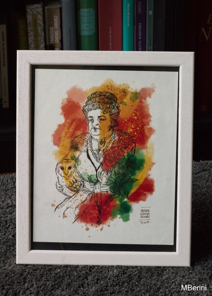 Y si admiráis tanto a la condesa como yo, la ilustradora Aurora Cascudo Román dispone en su catálogo de esta increíble ilustración de doña Emilia, la cual decora mi casa en este 2021, año Centenario de Pardo Bazán.