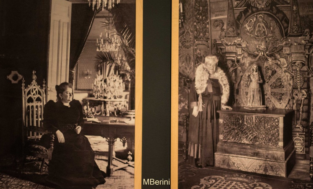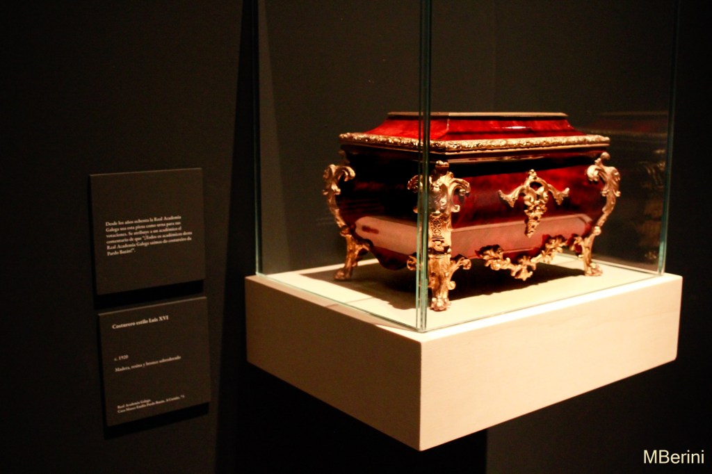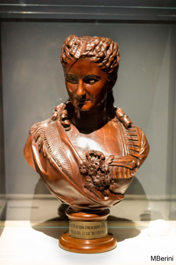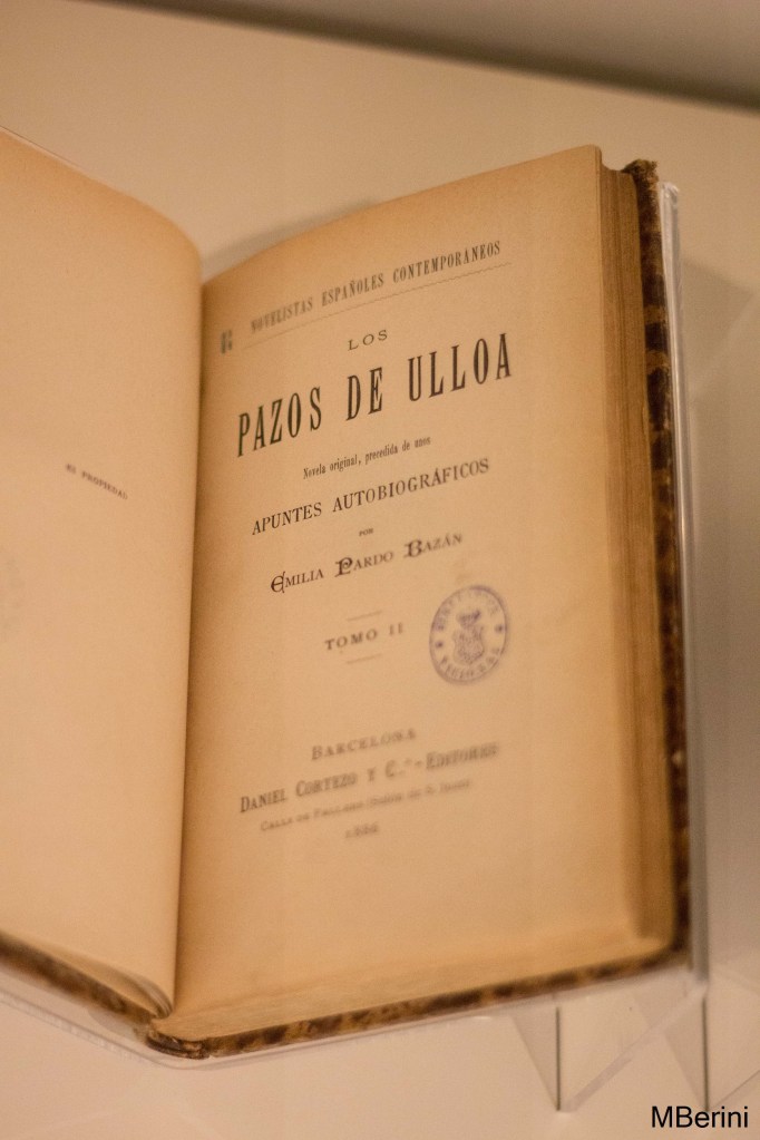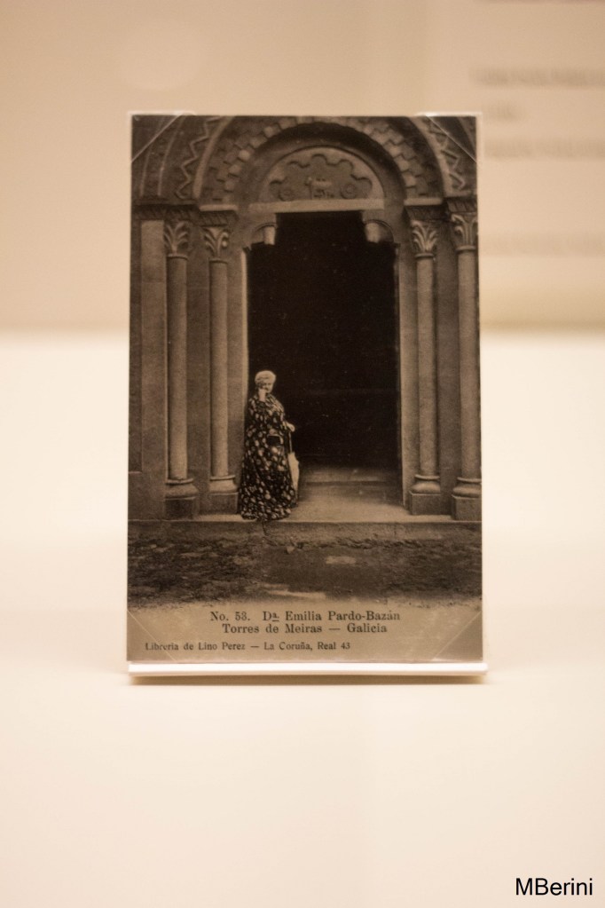 Continúa la exposición con «Meirás». Este apartado está dedicado, cómo no, al hoy Pazo de Meirás –Las Torres, como prefería llamarle ella–. Esta propiedad rural heredada de su familia significó mucho en la vida de doña Emilia. Allí permanecía largas temporadas disfrutando, a la par, de descansos e infatigables jornadas de trabajo. De estilo neorromántico, emulando los antiguos pazos gallegos, fue la fantasía y el sueño hecho realidad de la escritora el querer transformarlo en una residencia familiar construida a su gusto, donde también instaló su despacho profesional y una gran biblioteca. A su muerte, la propiedad no pudo continuar vinculada a la figura de doña Emilia, ya que sus herederos la vendieron, acabando en manos de la familia Franco.