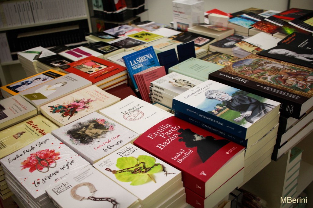 Al terminar, en la pequeña librería de la BNE podéis haceros con un ejemplar del catálogo de la exposición «Emilia Pardo Bazán. El reto de la modernidad», o aprovechar para comprar cualquiera de sus obras, ya que tienen a la venta todos los títulos publicados por la escritora coruñesa –ni habitual ni posible en una librería, de no ser por las circunstancias–.