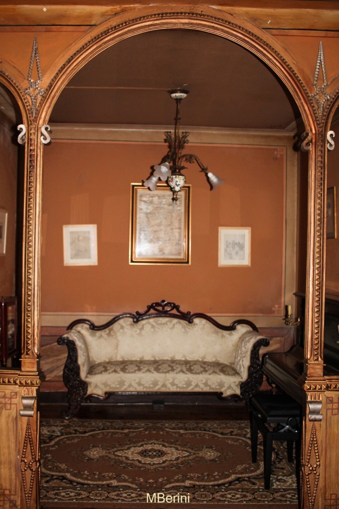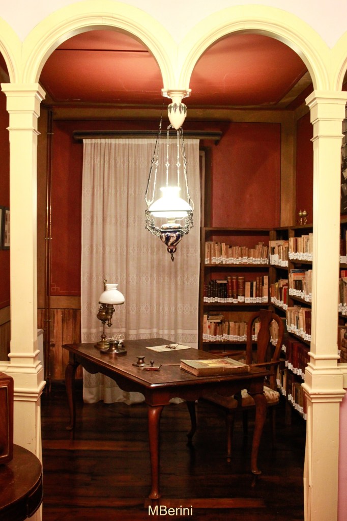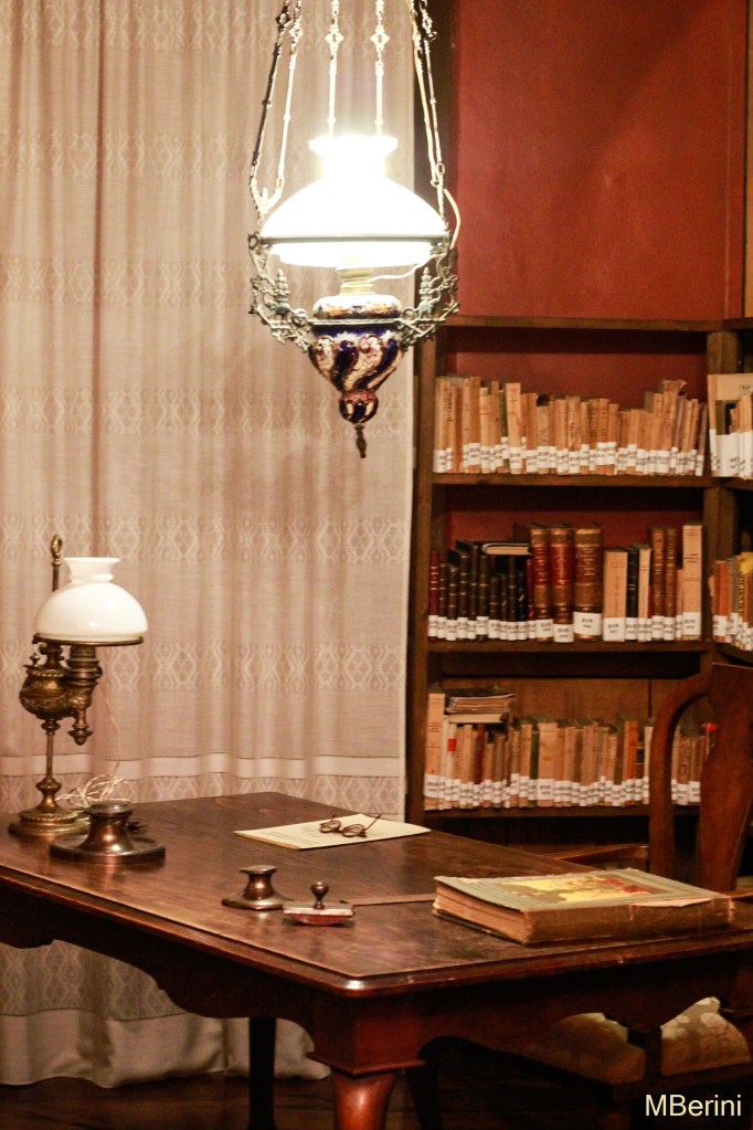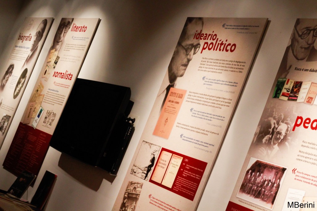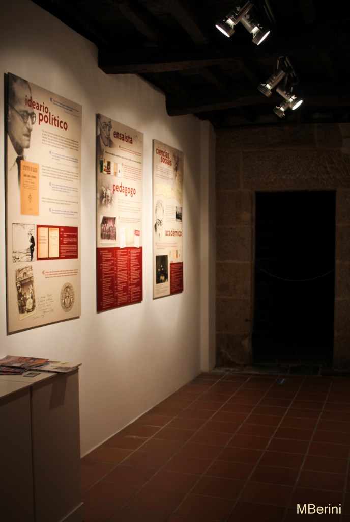 Nada máis entrar, na planta baixa do edificio, podemos afondar na polifacética figura de Vicente Risco grazas a unha serie de paneis que analizan a súa actividade cultura, académica, política, etc. Neste mesmo andar, un amplo espazo adícase ás exposicións temporais –no momento da miña visita, puiden desfrutar dunha mostra africana (click para máis información)–. Ao fondo, unha porta serve de acceso ao xardín posterior da casa, onde tamén teñen lugar moitas das actividades da Fundación, como concertos ou recitais de poesía.