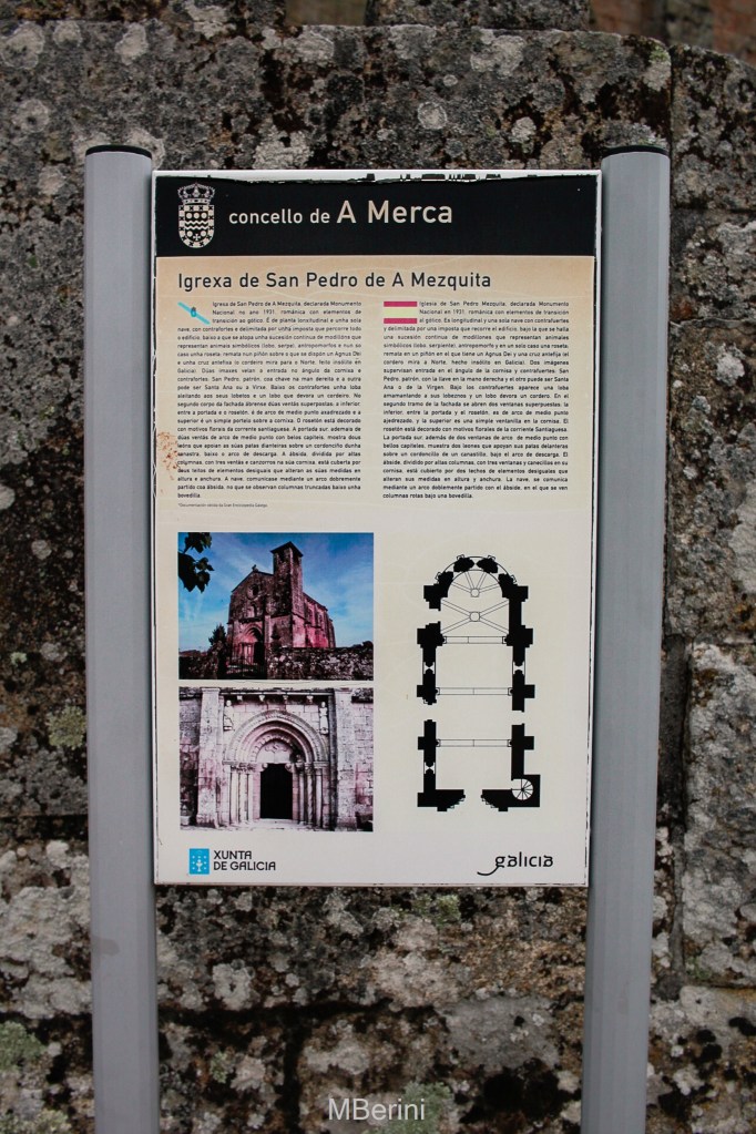 La iglesia de San Pedro da Mezquita se yergue en un pequeño otero dentro del pueblo, perimetrado por una cancela, donde también se encuentra situado el cementerio.