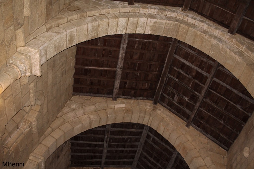 Un arco triunfal separa la nave del ábside. Como éste presenta dos espacios diferenciados, encontramos dos cubiertas distintas: una por bóveda nervada y otra por bóveda de horno. En el ábside cabe destacar la presencia de vanos, especialmente los tres centrales, por su complejidad constructiva.