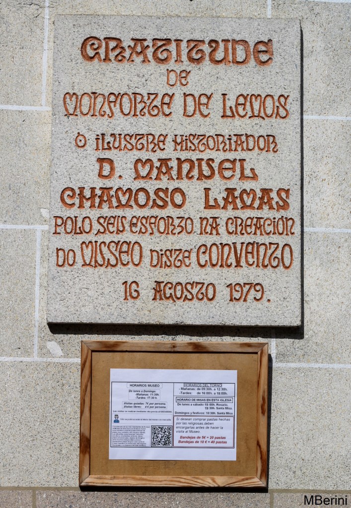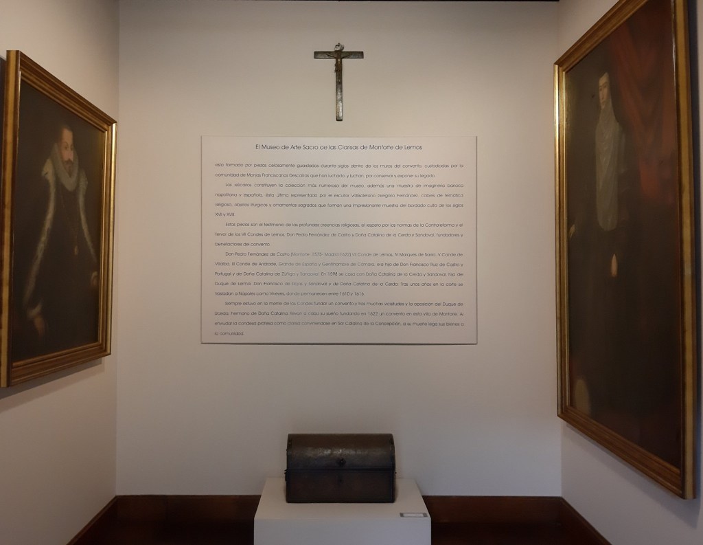 Convento de Santa Clara de Monforte. Neste último, no ano 1977, inaugurouse un museo de Arte Sacra dos máis relevantes de España. Mágoa que un, contengo o exabrupto, sistema de visitas, restrinxido e con reserva telefónica, impediume desfrutar da colección cando estaba plantada na porta. Na mostra destacan pezas como un Cristo xacente de Gregorio Fernández. Non se sabe con certeza en que punto repousan os restos dos condes, xa que os frecuentes ataques e espolios fixeron que se agocharan nalgún espazo que hoxe descoñecemos.