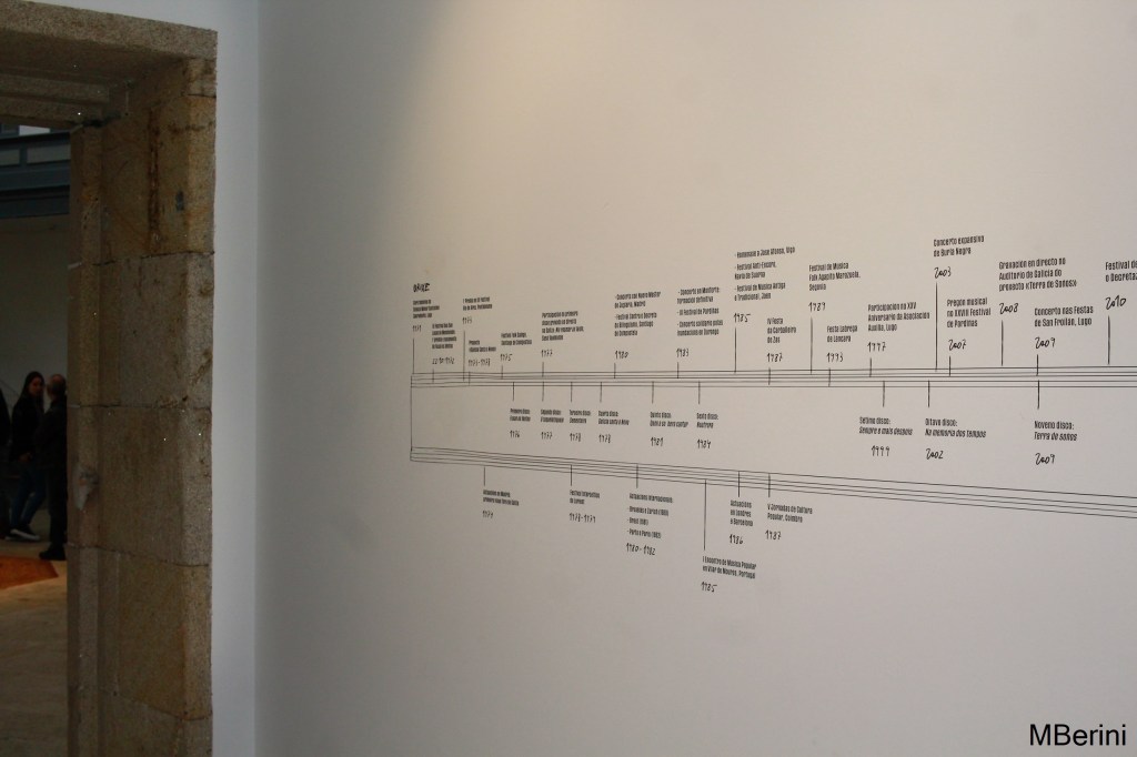 Desde o patio de celas subiremos ao primeiro andar para abordar a sección «cronoloxía», repartida ao longo de once salas. Comezaremos coas adicadas as primeiras gravacións —catro discos, como sinalaba máis arriba—, para continuar debuxando a traxectoria da banda lucense: os éxitos no estranxeiro, a paréntese dos oitenta, dous novos discos a comezos de século, o gran proxecto «Terra de soños» xunto a outros artistas galegos ou o seu activismo político-cultural —na catástrofe do Prestige, por exemplo—.