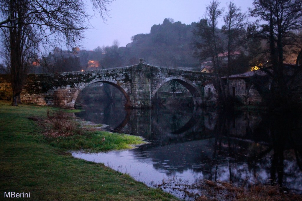 Al comienzo, al final o entremedias. En cualquier visita a Allariz se pasea con el río Arnoia. Grabadas tengo varias imágenes de los que yo di. Me quedo con el que se puede dar al anochecer, desde el Museo do Coiro hasta el puente de Vilanova, aunque sea bajo la lluvia.