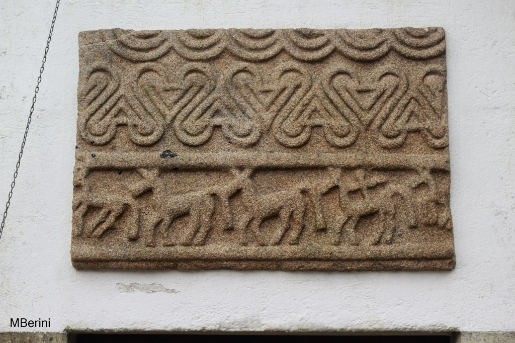 El relieve de la capilla de San Sebastián y Candelaria apareció durante unas obras de remodelación, bajo la mesa del altar. Está dividido en tres niveles y cada uno de ellos se puede analizar por comparativa con otras piezas semejantes halladas en lugares de Galicia y Portugal. Según los estudios realizados, probablemente estemos ante piedras recogidas en la zona del antiguo castro, Monte Castelo. En dicha zona sabemos que se construyó un castillo medieval destruido durante las revueltas Irmandiñas y que su posterior reconstrucción sobrevivió hasta el siglo XIX.