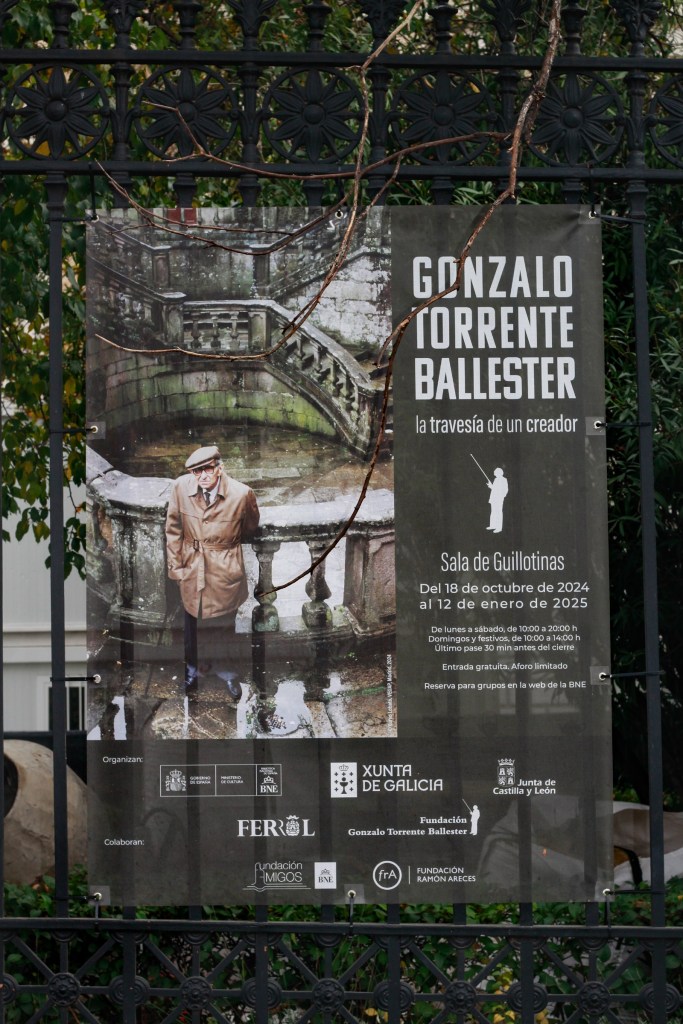 Si al otoño y a la agenda cultural nos referimos, no puede faltar mención a Madrid. Se cuentan casi por decenas los eventos que en la capital despiertan mi interés cuando echo un vistazo a las últimas noticias en Internet. Y con bastante frecuencia estos eventos interesantes tienen lugar en la Biblioteca Nacional de España (BNE). Recuerdo con especial gusto mi visita a la exposición por el centenario de la muerte de Benito Pérez Galdós en 2020 o la que por el mismo motivo se organizó en 2021 en honor a Emilia Pardo Bazán. Las efemérides relacionadas con escritores españoles son motivo recurrente para la BNE, que bajo ese pretexto diseña muestras retrospectivas de la carrera y la obra de los homenajeados en cuestión. Precisamente por el 25º aniversario del fallecimiento del escritor ferrolano esta institución inauguró la exposición «Gonzalo Torrente Ballester, la travesía de un creador», abierta al público del 18 de octubre al 12 de enero.