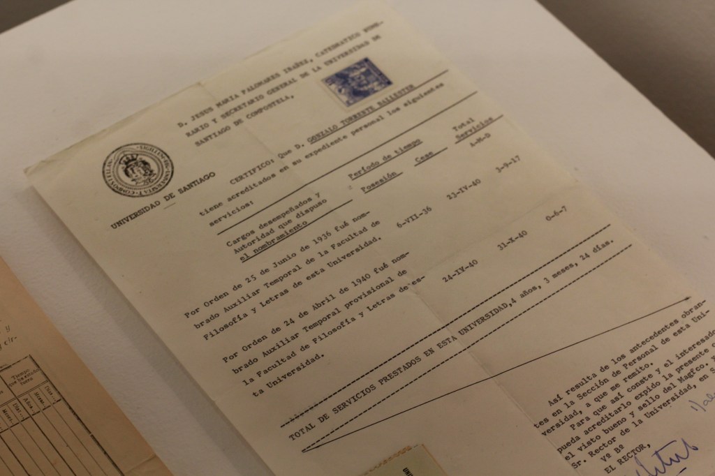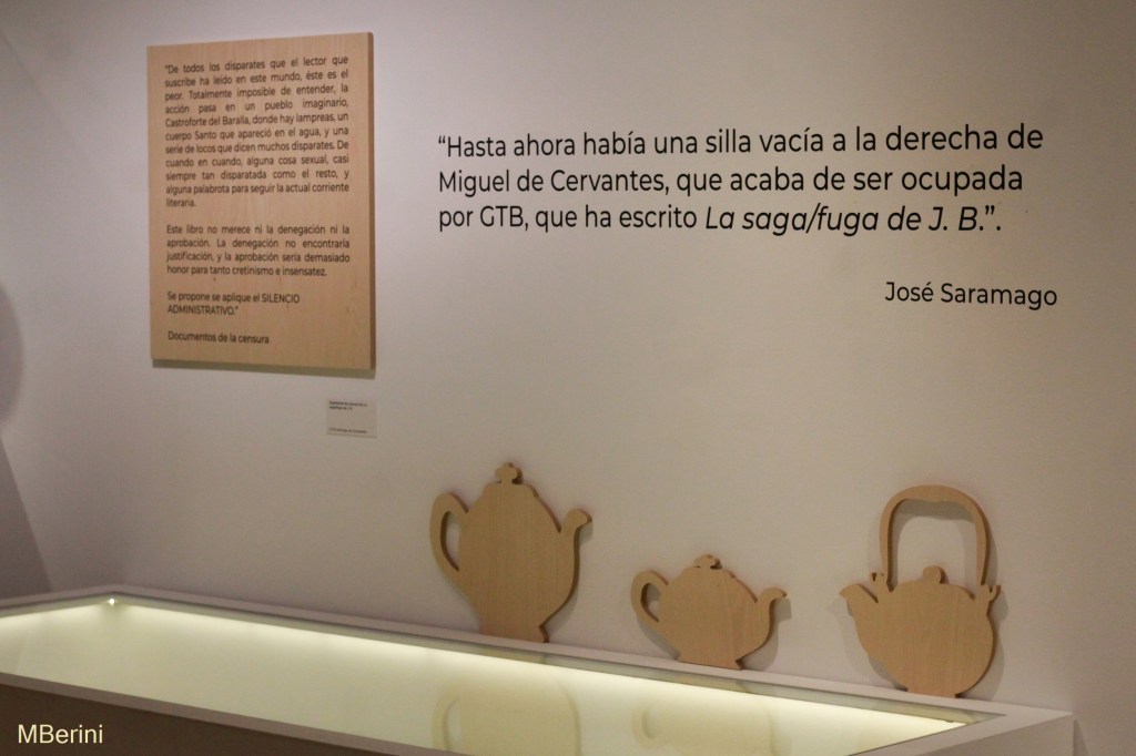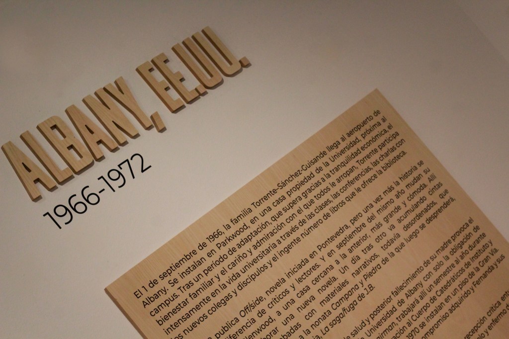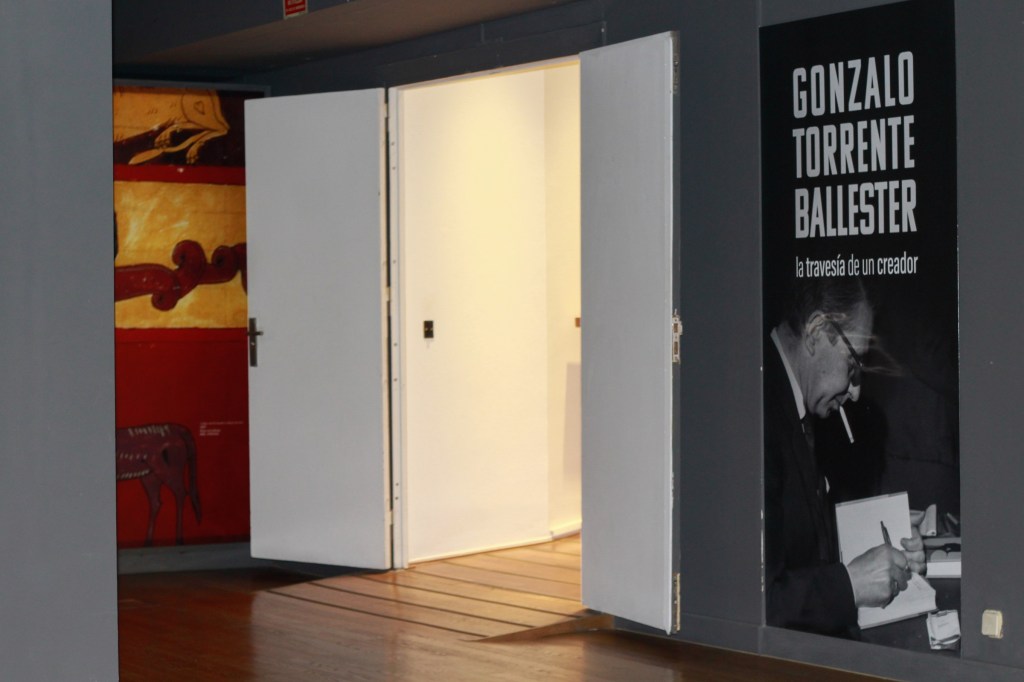 La exposición «Gonzalo Torrente Ballester, la travesía de un creador» está dividida en cinco secciones que llevan por título el nombre de las ciudades que fueron relevantes en la vida y la carrera del escritor: Ferrol, Madrid, Pontevedra, Albany, Vigo y Salamanca. No sólo objetos personales y publicaciones son interesantes en esta exposición. La faceta fotográfica y cinematográfica de Torrente está muy presente: sus cámaras, su magnetófono e imágenes tomadas por él mismo. También se proyecta sobre una pared el documental «GTB x GTB». Y una curiosidad: ¿por qué se repite como icono en toda la muestra una jarra de té? Por su afición personal a esta bebida. En el último espacio de la exposición, cerramos la visita con la relación del escritor con otras grandes figuras de las letras españolas.