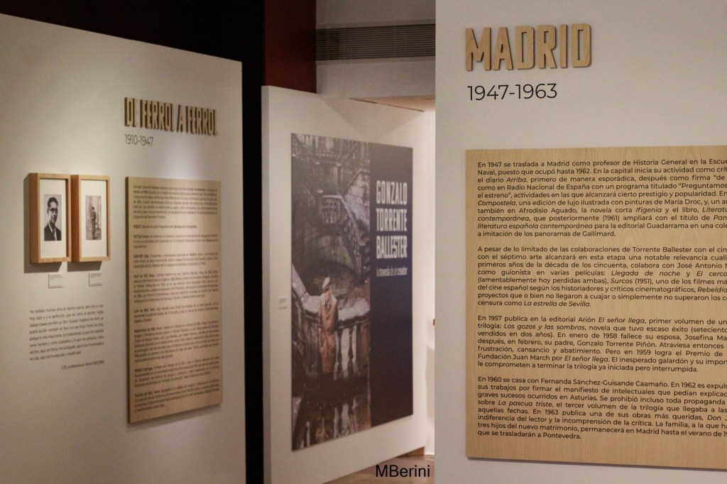 El primer libro que consulté como bibliografía ya llamaba la atención sobre el hecho de que Torrente Ballester, a pesar de ser un escritor famoso, es un autor poco estudiado desde el punto de vista académico. No fue fácil encontrar contenidos rigurosos y variados sobre la vida y la carrera literaria del ferrolano. Pero el objetivo de esta entrada no era publicar un tratado académico, sino dar un pequeño paseo por la exposición a la vez que se repasan los aspectos más relevantes de su figura. Podéis consultar la lista de bibliografía y otros recursos al final del reportaje.